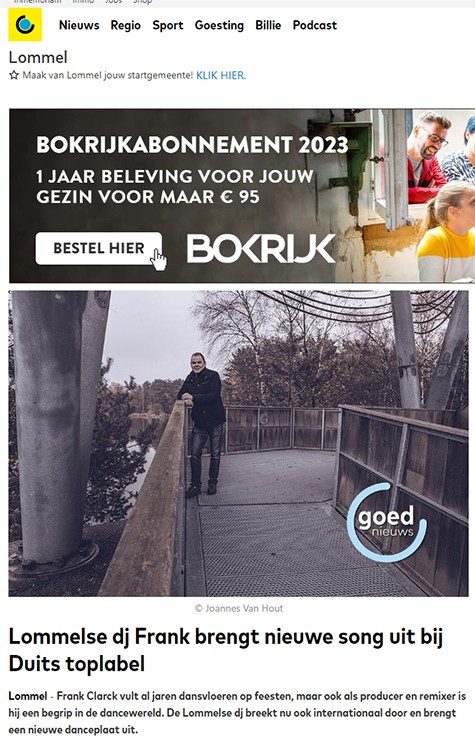 De krant legde met dit artikel ook even de nadruk op de mijn dance en house muziek in de week van de Belgische muziek. Week Belgische Muziek: Frank Clarck